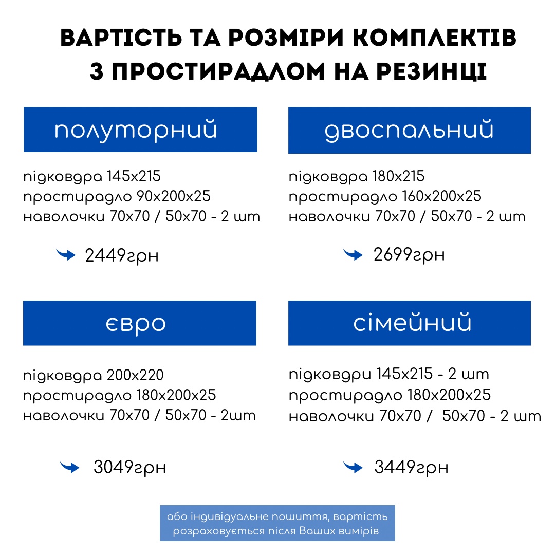 Ранфорс - 100% преміальна турецька бавовна •приємна до тіла, щільна, матова, не потребує прасування •не парить, не електризується, гіпоалергенна •не кошлатиться та не втрачає колір навіть після 400 прань Ідеальний варіант для власників домашніх улюбленців🐾 Таблиця розмірів та їх вартість в додаткових фото до товару ⇧ ❕Зверніть увагу, якщо бажаєте двоколірні наволочки +250грн Всі півковдри зі змійкою, але за Вашим запитом можемо пошити на запах * термін пошиття 3-5 робочих днів ** колір може відрізнятися при різному освітленні та різних дисплеях ***варіанти поєднання кольорів за Вашим бажанням Додаткові послуги: ✓ вшив замочків на наволочки - 300грн ✓ двосторонні наволочки - 250грн ✓ оксфордські наволочки(вушка) - 300грн Комплект приходить в гарній упаковці-чудово підходить на подарунок