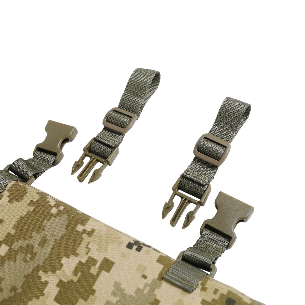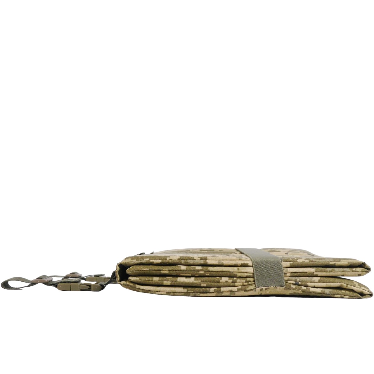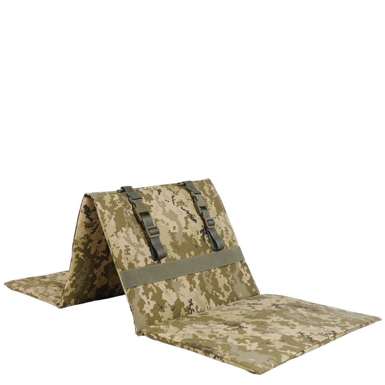 Тканина Cordura nylon 500D Колір: піксель, мультикам Килимок трансформер, що складається з 4-х секцій. Невеликі розміри та можливість використовувати в чотирьох різних положеннях, робить цей виріб надзвичайно універсальним та незамінним в польових умовах. Оскільки килимок має відмінні теплоізоляційні властивості, ви мінімізуєте ризики переохолодження сидячи на холодній землі або "броні". У згорнутому вигляді (сидіння) має розміри 40х30см. У положенні розгорнутий 1/2 (сидіння + спинка) має розміри 40х60см. У положенні розгорнутий 1/3 (сидіння + спинка) має розміри 40х95см. У положенні розгорнутий 1/4 (килимок) має розміри 40х130 Як буфер та утеплювач використовується ізолон підвищеної жорсткості товщиною 10мм. Підвіси із стропи з двома додатковими фастексами для кріплення на систему MOLLE до плитоноски або РПС. Завдяки швидкоз'ємним фастексам сидушка легко і швидкого приєднується та скидається з себе.