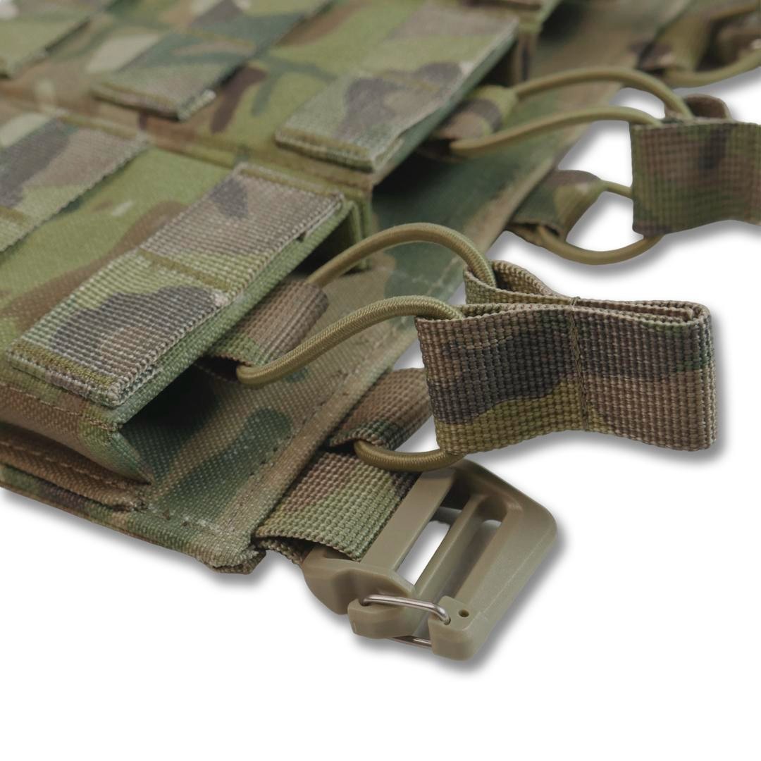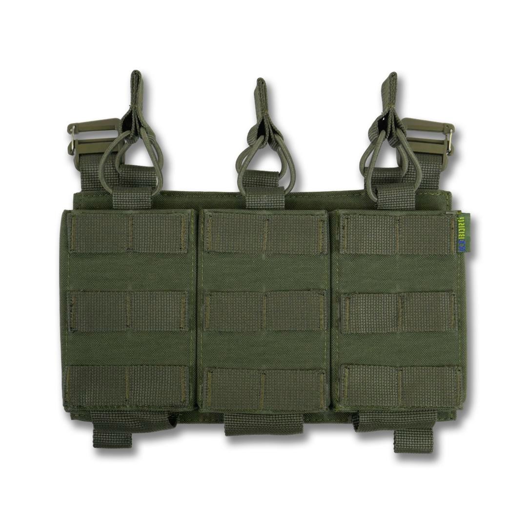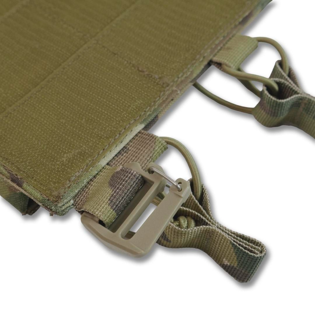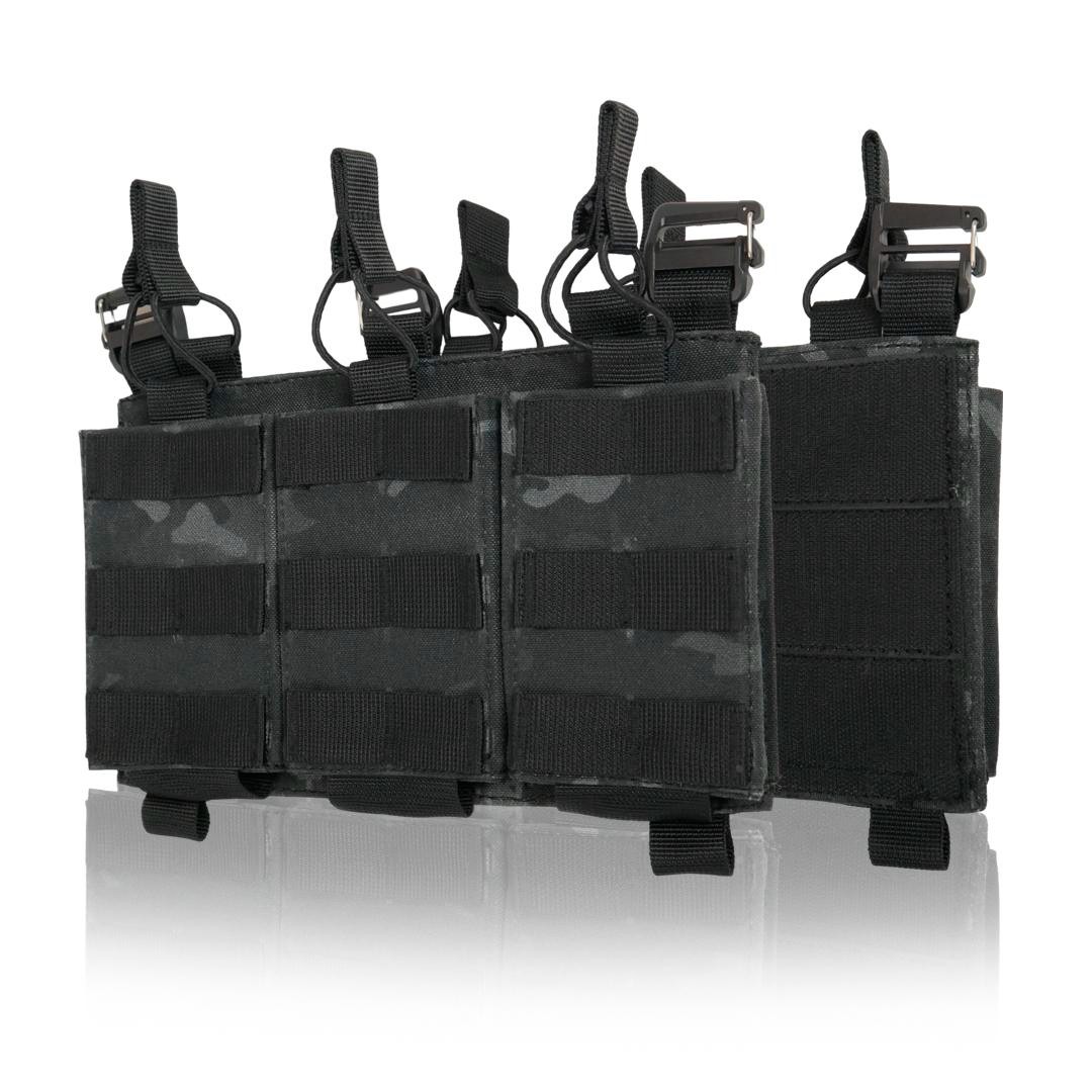 Колір: піксель, мультикам, хакі, койот, чорний мультикам. Функціональна, легка зʼємна панель з 3-ма підсумками під 1 магазин для плитоноски дозволить надійно розмістити 3-и магазина серії АК/AR/РПК та забезпечить швидке перезарядження під час виконання бойових задач. Розмір: 25х15. Основна тканина Cordura 1000D 380г/м² з NIR-просоченням, що робить виріб менш помітним у приладах нічного бачення. Має подвійне поліуретанове покриття для захисту від вологи та мастильних матеріалів, не підтримує горіння, не стирається, не вигорає на сонці, зберігає свої властивості тривалий час в екстремальних умовах експлуатації. Усі стропи 100% поліамід. Низ підсумку фіксується 5 см. стропою, яка надійно пришита та не дасть магазину випасти. Також завдяки отворам внизу будь-який бруд чи вода швидко вийдуть з нього. Система фіксації магазинів здійснюється за допомогою еластичної резинки та страхової стропи з «вушками», що забезпечують надійний захист від випадання. Завдяки продуманій конструкції, робоча поверхня хвату магазина залишається відкритою, тому маніпуляції з ним відбуваються набагато швидше. З боків і з переду ми додали пластик, щоб підсумок був надійним та добре тримав форму. Також і сама основа усієї платформи виготовлена з пластику та Кордури, такий спосіб забезпечить максимальну якість та комфорт у користуванні. Фурнітура - пластикові рамки з замком від Японського виробника WJ у формі D-кільця, які слугують з’єднувальним елементом в поєднанні з велкро липучкою дозволяють прикріпити панель на передній частині плитоноски і за потреби швидко зняти її. Внизу наявні 2 петлі зі стропи для кріплення додаткового спорядження. Підсумок забезпечить швидке перезаряджання та стане необхідним елементом індивідуального спорядження бійця.