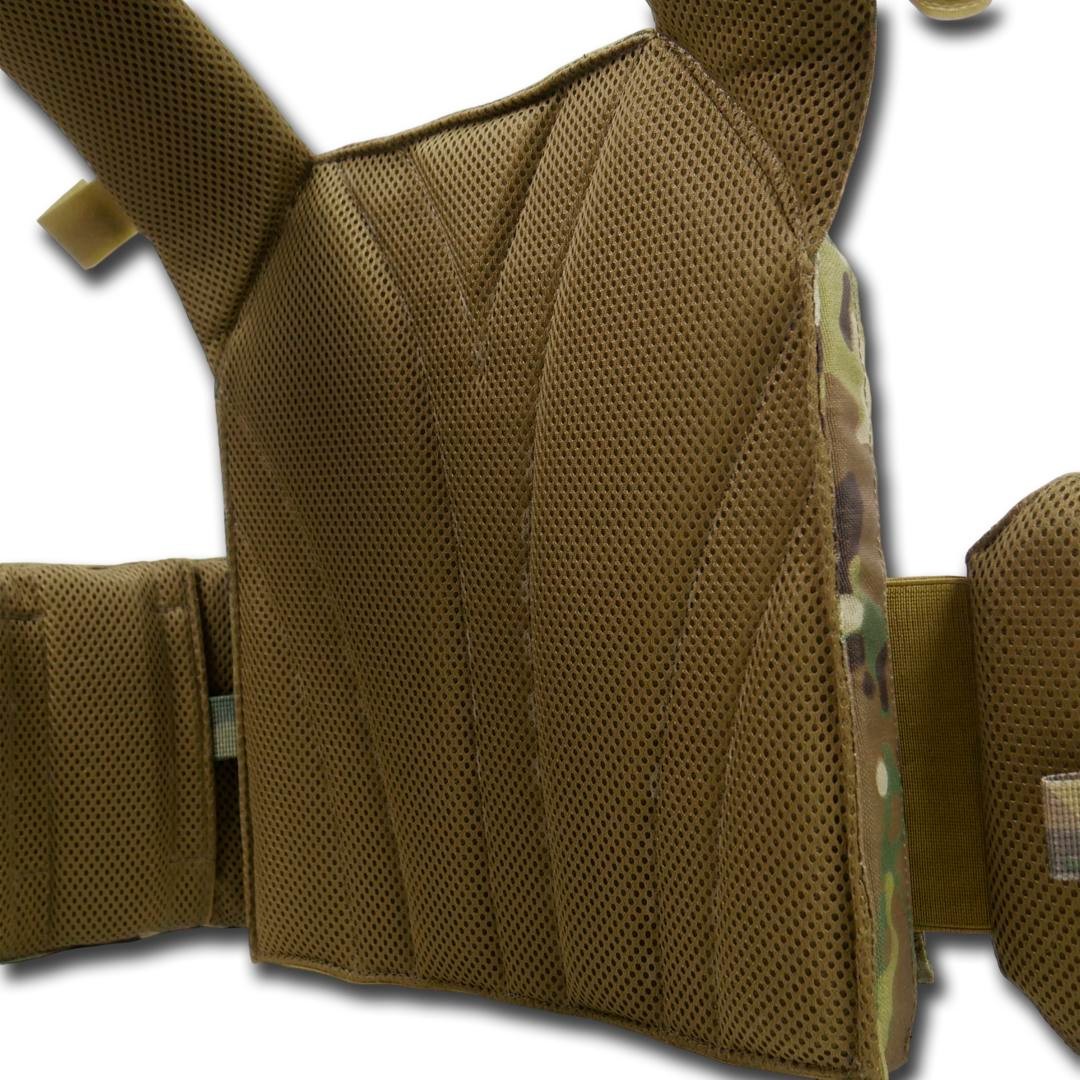 Плитоноска GU gen.2 — це нова генерація індивідуального бронезахисту в лінійці GU (Glory to Ukraine). Сумісна зі стандартними бронеплитами 25х30 зі скошеними верхніми кутами (металеві або керамічні товщиною до 30мм). Плитоноска оснащена з’ємною передньою Molle панеллю яка кріпиться до основи на Velcro та додатково двома карабінами Woojin. На ній зручно розміщуються 3 підсумки під 1 або два магазини, або інше Molle-сумісне спорядження. Цю панель можна швидко замінити на іншу із закрікленим на неї заздалегідь набором потрібних підсумків. У верхній частині над клапаном розташована посилена велкро панель з Luser Cut Molle, яка дозволить розмістити не тільки ваші улюблені патчі, а й Molle-сумісне спорядження, наприклад адміністративний підсумок чи кріплення для телефону, та невелике адміністративне відділення (кишеня) на вологозахисній блискавці зі зручним пулером для зберігання невеликих плоских речей, як от посвідчення, ключі, запальничка та ін. Всі елементи системи Molle та вузли на які припадає найбільше навантаження посилені, прошиті зигзагоподібними швами нитками Tytan на спеціальній закріпочній машині, що гарантує міцність та довговічність таким швам. Подвійна система швидкого скидання в зоні плечей та камербандів дає змогу за лічені секунди скинути з себе плитоноску, просто потягнувши за паракорд. Завдяки швидкоскидам плитоноска одягається швидко та зручно. Основна тканина - Cordura Nylon 6.6 1000D 380г/м² з NIR-просоченням, що робить виріб менш помітним у приладах нічного бачення. Має подвійне поліуретанове покриття для захисту від вологи та мастильних матеріалів, не підтримує горіння, не стирається, не вигорає на сонці, зберігає свої властивості тривалий час в екстремальних умовах експлуатації. Внутрішні частини плитоноски мають по чотири демпферні вставки обшиті 3D сіткою товщиною 3мм, що забезпечує амортизацію та правильну циркуляцію повітря. Верхні ергономічні плечові лямки з м’яким демпфером та 3D-сіткою органічно повторюють контури тіла, правильно розподіляють навантаження і сильно не жмуть на плечі. На лямках присутня система регулювання по довжині (розміру), повноцінні стропи Molle для кріплення додаткових підсумків, найчастіше турнікету чи рації і додаткові кріплення для трубки гідратора. М’які подушки повністю перекривають пластикові пряжки швидкого скидання що запобігає натиранню під час носіння. Камербанди повністю з’ємні, мають м’які демпфери обшиті 3D сіткою. Демпфери не цільні, а розділені на п’ять частин для більшої гнучкості самого камербанду і кращої циркуляції повітря. Камербанди кріпляться з обох сторін до плитоноски за допомогою великих велкро-панелей, це забезпечує можливість швидкого і зручного регулювання розміру (об’єму). На задній частині камербандів присутні вставки у вигляді подвійної резинки 100мм для додаткової еластичності. Камербанди мають 3 ряди строп Molle для кріплення підсумків і кишені під балістичні пакети балістичний пакет 1-го або 2-го класу від компанії Militex, які можна придбати у нас разом із плитоноскою. Фронтальна частина плитоноски має чотири ряди с-ми Molle та велкро панель з Luser Cut Molle посилену із середини стропою для Molle-сумісного спорядження та ID-патчів та ручка для евакуації, яка в похідному положенні фіксується до спинки панелями Velcro. По низу плитоноски, спереду і ззаду додано по 2 D-кільця для кріплення додаткового с