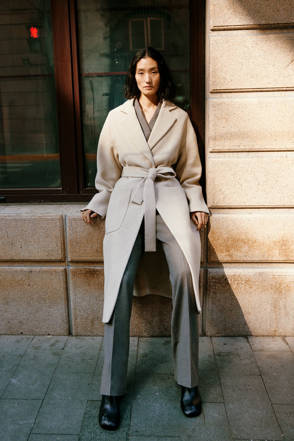Довге пальто на основі вовни з паском