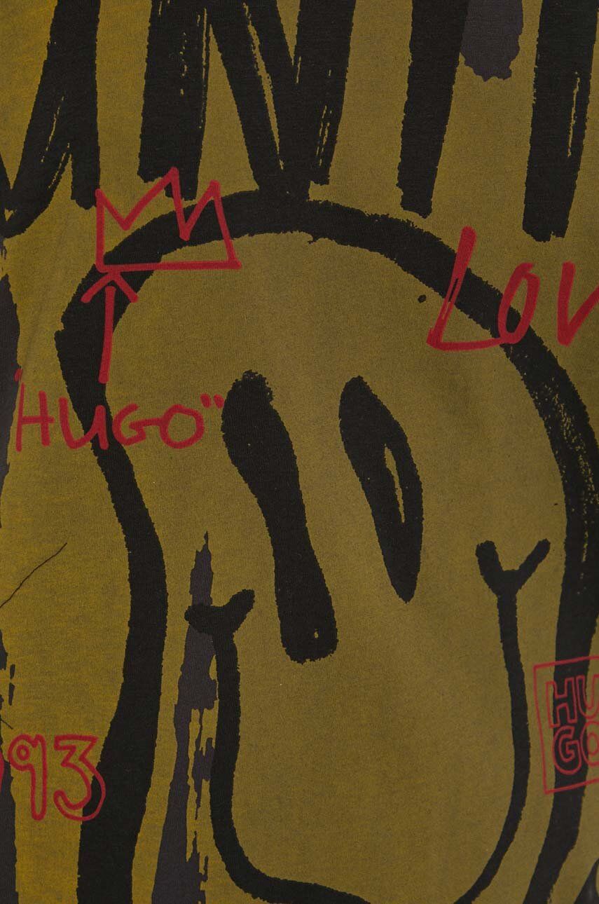 Футболка з колекції HUGO виконана з узорного трикотажу. Модель з надзвичайно приємного на дотик матеріалу. ґ- Ініціатива Clean Up Your Act HUGO - підтримка виробництва бавовни в Африці. Бренд підтримує кампанію Cotton made in Africa (CmiA), яка допомагає дрібним фермерам в Африці вдосконалити свої навички ведення сільського господарства та захищати природні ресурси, а також підтримує сталий розвиток (без використання генетично модифікованого насіння та вирубки лісів). - Простий, необмежуючий рухів фасон. - Класичний круглий виріз. - Короткий рукав. - Тонкий, еластичний трикотаж. - Довжина: 71 cm. - Ширина під пахвами: 50 cm. - Параметри вказані для розміру: S. Склад: 100% Бавовна