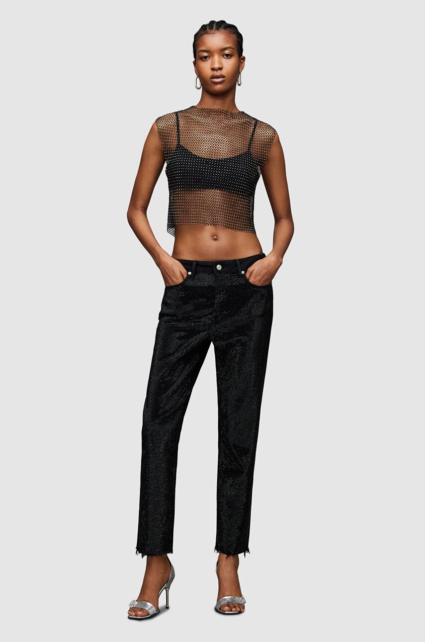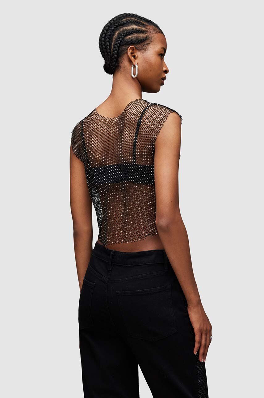 ПередзамовленняТоп із колекції AllSaints. Модель виготовлена із сіточки. - Сітчаста структура матеріалу забезпечує оптимальну повітропроникність і вентиляцію. - Простий, необмежуючий рухів фасон. - Модель з декоративною аплікацією. Склад: Текстильний матеріал